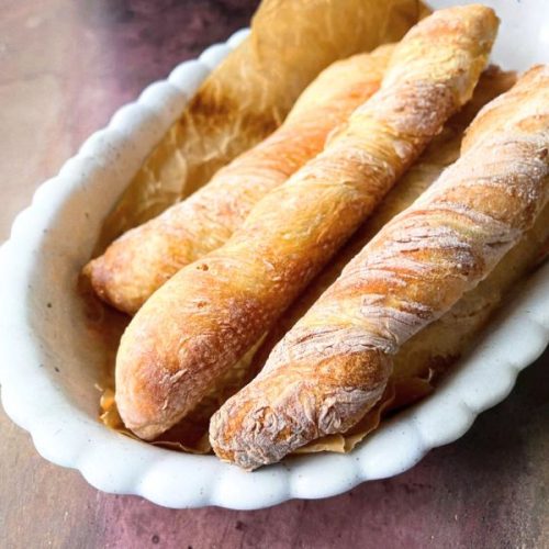 An easy, four-ingredient, no-knead baguette recipe that yields light, airy loaves with minimal effort.