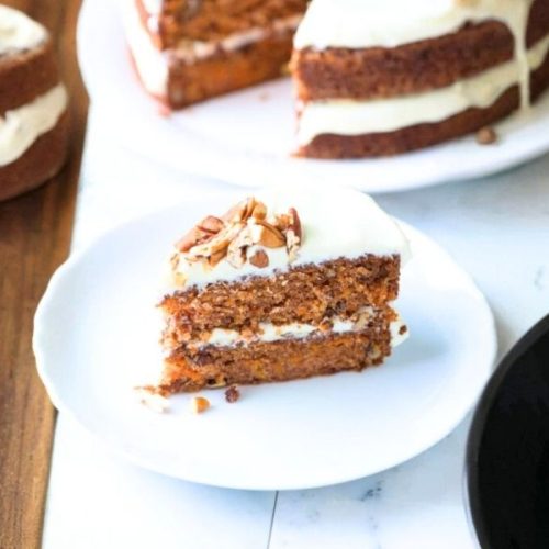 Packed with wholesome ingredients like grated carrots, pecans, and raisins, this cake delivers a comforting mix of fiber and plant-based nutrients, making it a healthier indulgence compared to typical desserts.