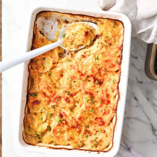 • Rest Before Serving: Let the scalloped potatoes rest at room temperature for about 20 minutes to allow the sauce to thicken and the flavors to meld before slicing and serving.