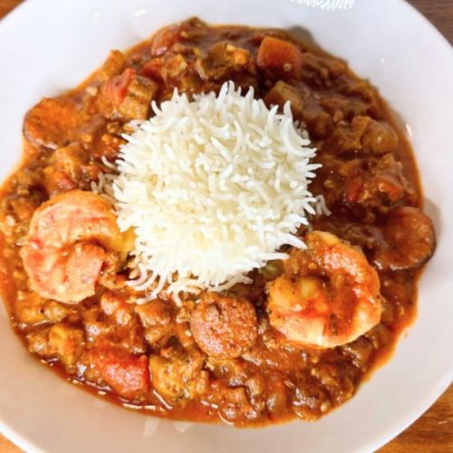This hearty Creole stew shines best when served over a bed of fluffy white rice or creamy grits, which soak up the luscious sauce beautifully.