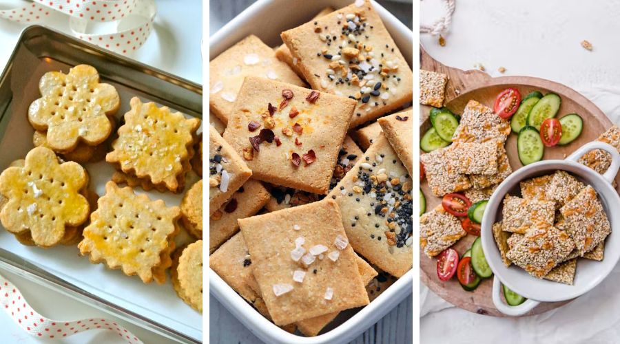 From buttery almond flour crackers to herbed cheese crisps and savory seed mixes, these snacks pair beautifully with dips, cheeses, and charcuterie boards.