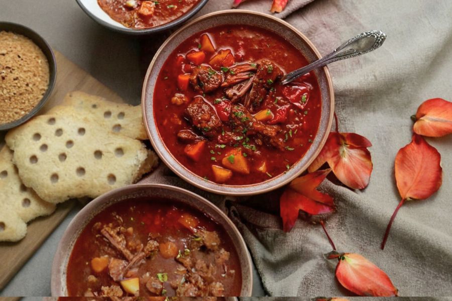 It stands out for its rich, stew-like broth that’s naturally thickened with tomatoes, eliminating the need for heavy creams or flour-based thickeners.