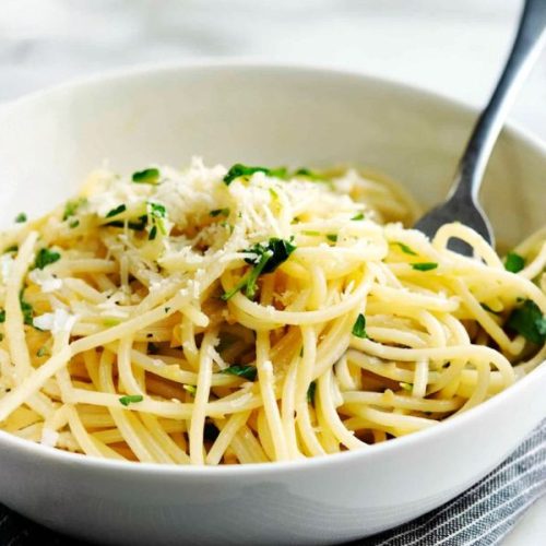 The combination of garlic, olive oil, butter, and zesty lemon creates a luscious, aromatic sauce that clings beautifully to the pasta.