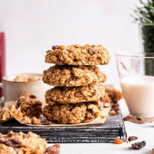 With the addition of raisins and walnuts, these cookies offer a delightful balance of sweetness and crunch, along with plant-based protein and healthy fats from walnuts that support heart health.