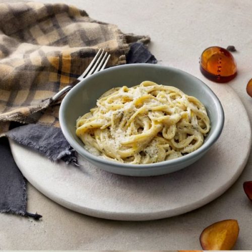 While this dish isn’t low-carb, it can easily be paired with a crisp side salad or steamed vegetables for a fiber boost. Parmesan provides protein and calcium, while olive oil brings in heart-healthy monounsaturated fats.