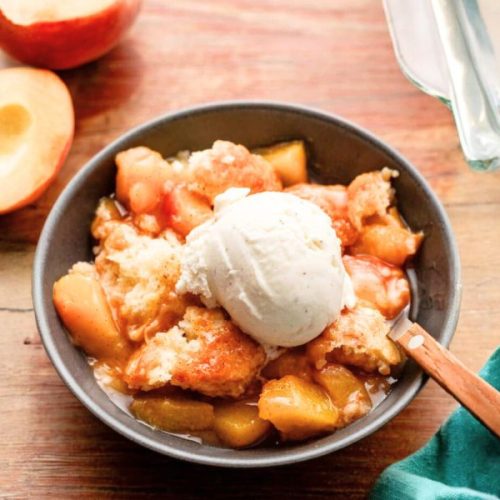 - For best flavor, use ripe, juicy peaches; slightly underripe fruit may be too firm and affect the cobbler’s texture.
