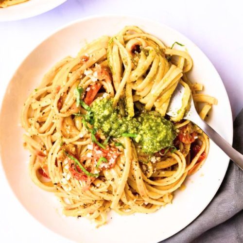 Yes! While linguine works wonderfully for coating with sauce, penne, spaghetti, or fusilli are equally delicious and hold the tomato-pesto blend beautifully.
