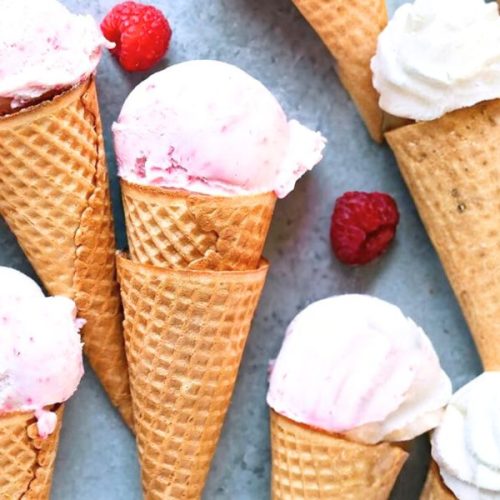 Yes! Pour the ice cream base into a shallow, freezer-safe container and freeze, stirring every 30–45 minutes to break up ice crystals until smooth, then layer with raspberry sauce before the final freeze.