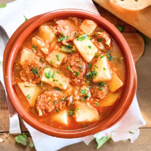 A deliciously smoky and hearty Spanish Chorizo & Potato Stew that combines simple ingredients to create a nutritious, fiber-rich, and protein-packed meal perfect for any day of the week