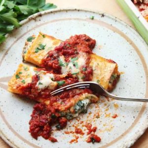 Spinach and ricotta manicotti pairs beautifully with light, fresh sides that complement its richness.