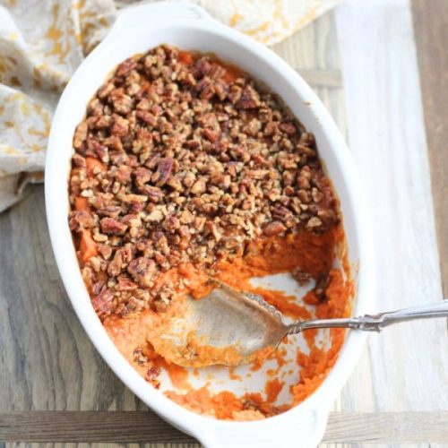 This Southern Sweet Potato Casserole with Brown Sugared Pecans is a comforting and flavorful classic that perfectly balances sweet and warm spice notes.