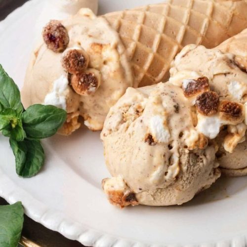 Once set, scoop generously into bowls or cones, and enjoy the delightful combination of creamy custard and smoky-sweet marshmallow chunks reminiscent of a summer campfire treat.