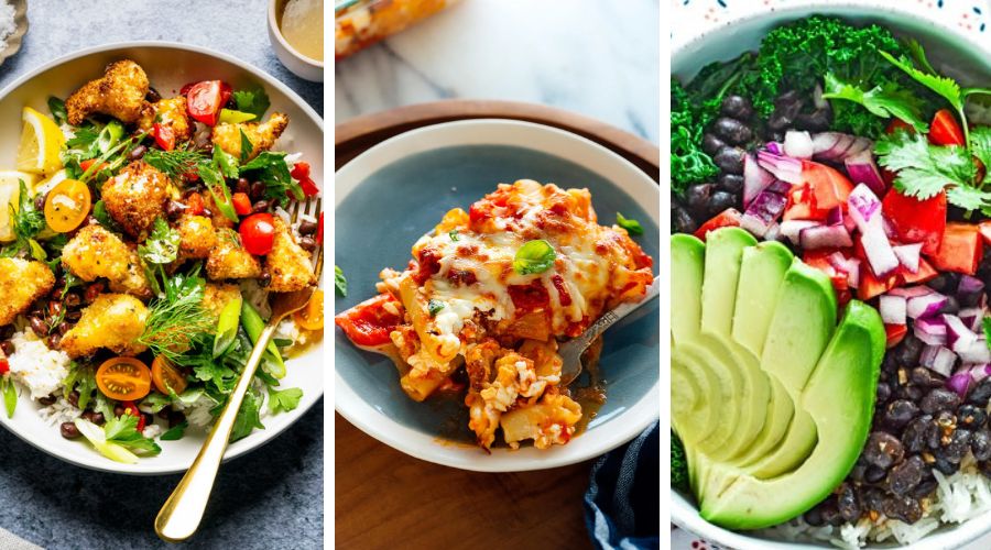 It’s a balanced vegan meal full of protein, fiber, and fresh vegetables.